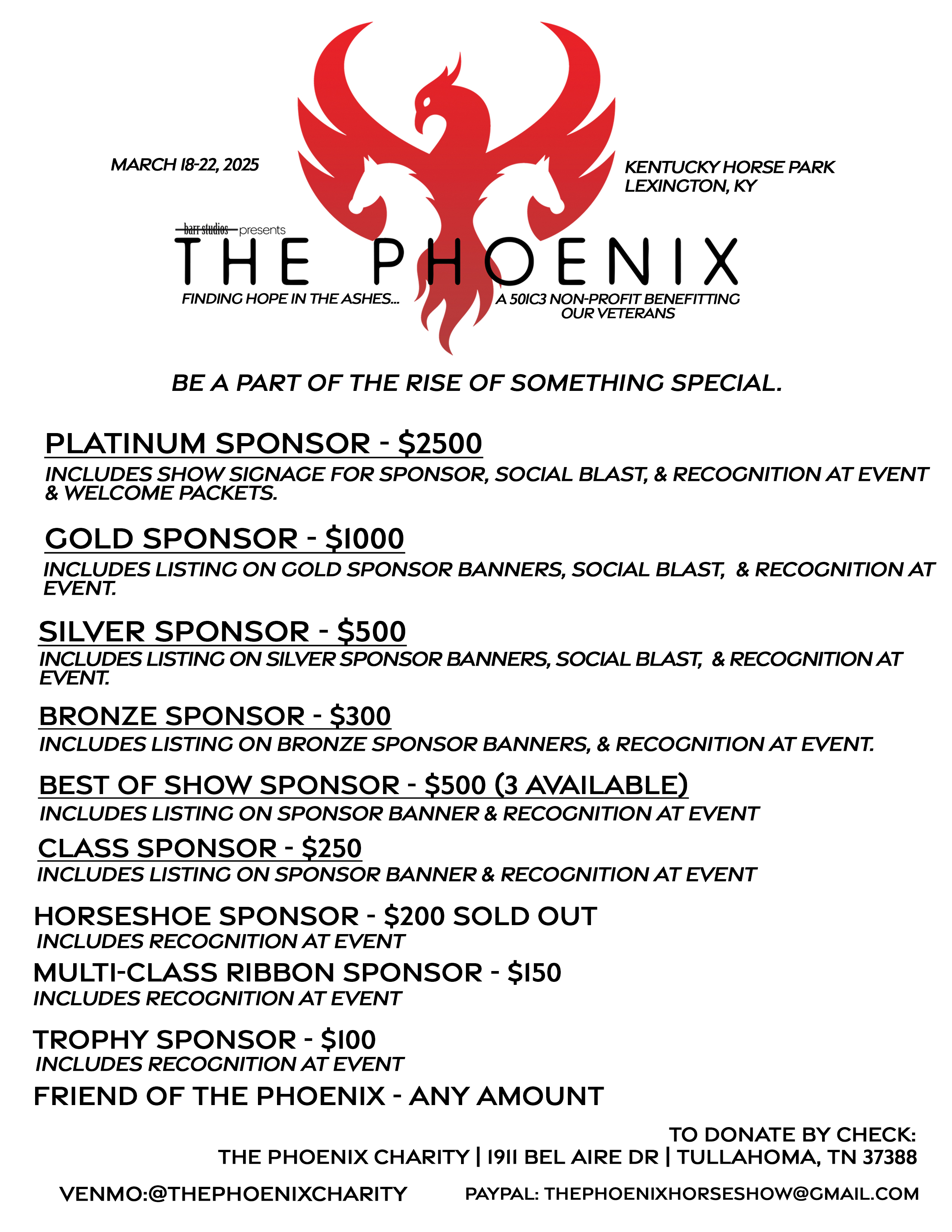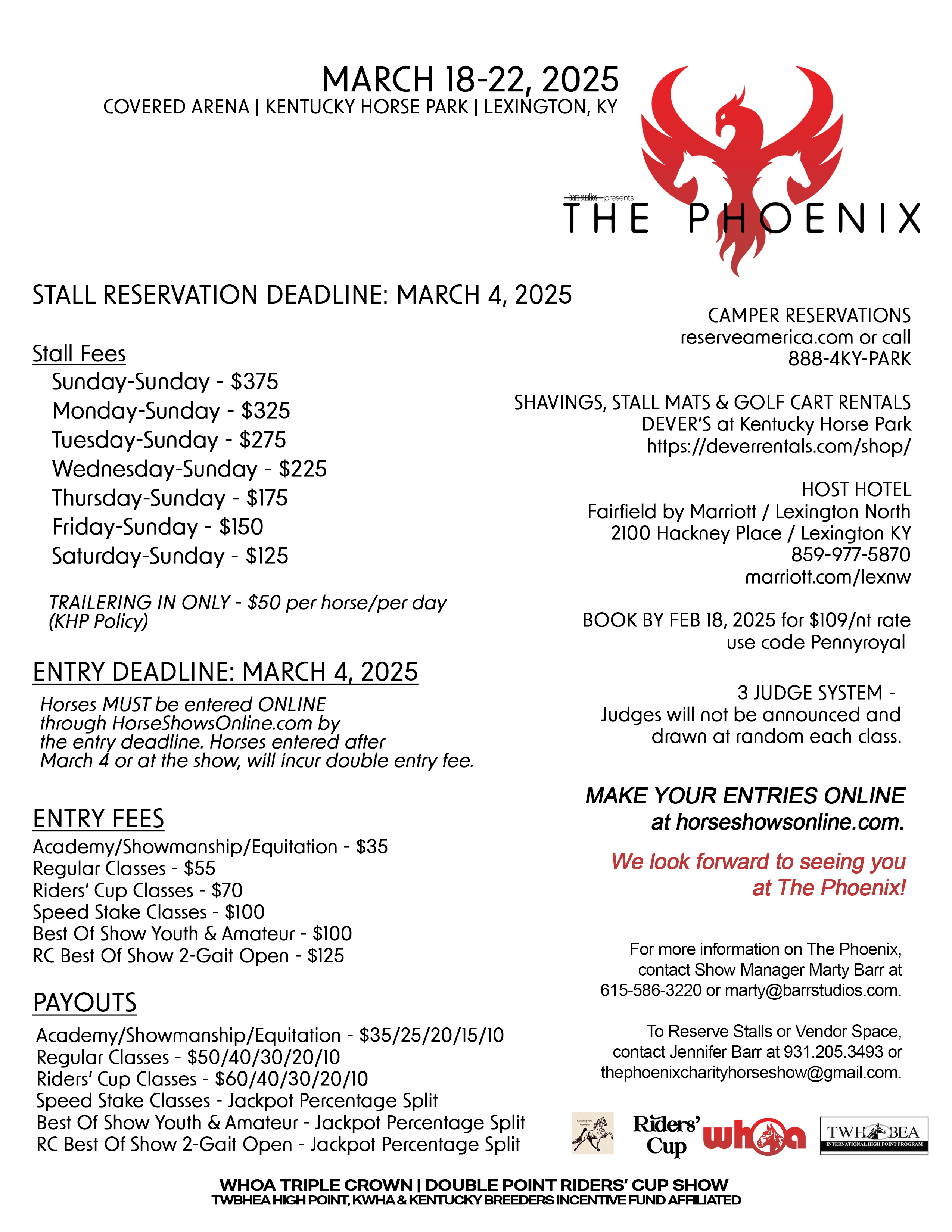 For show information, contact Marty Barr at 615-586-3220, marty@barrstudios.com or thephoenixhorseshow@gmail.com.
